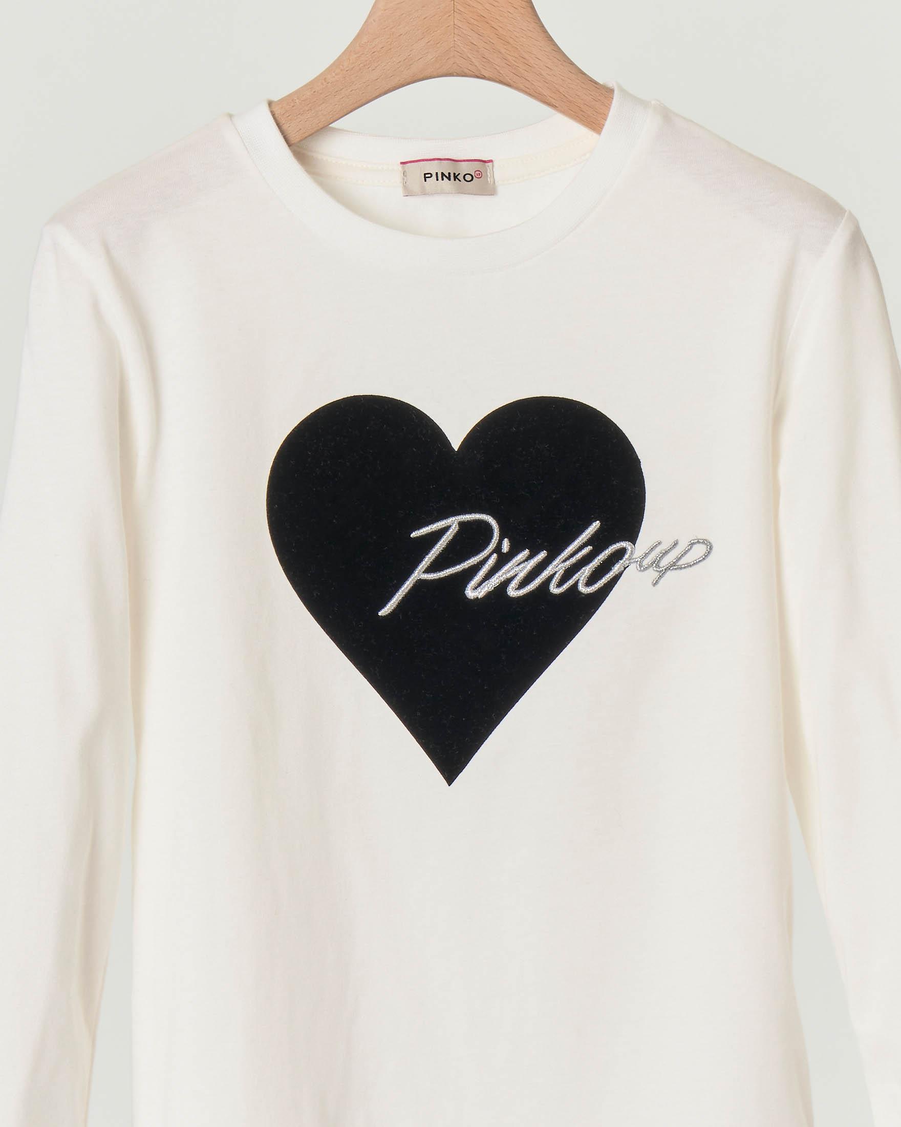 T-shirt bianca manica lunga con cuore nero e logo S-2XL | Pellizzari E-commerce